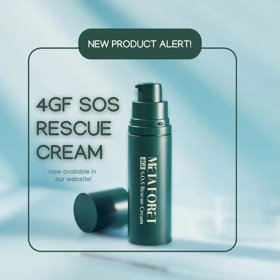 Introducing Meta Foret's 4GF SOS Rescue Cream-Your skin'semergency solution! Formulated to accelerate skin recovery, reduceirritation, and provide immediate relief after treatments.